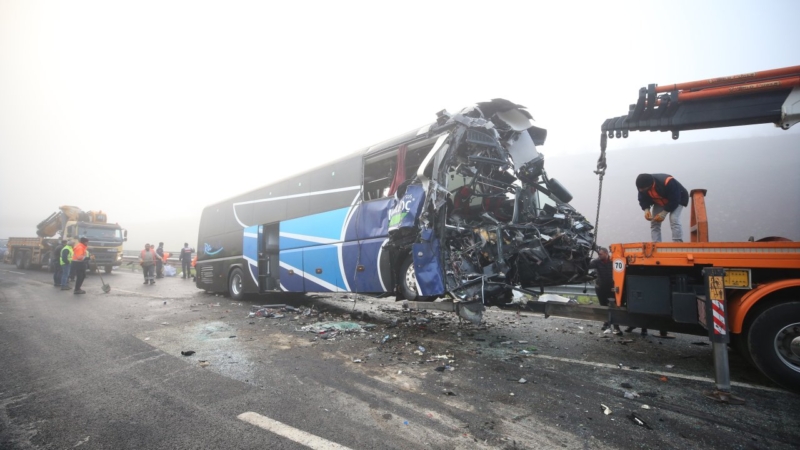 Kuzey Marmara Otoyolu’nun Sakarya kesiminde dün, Giresun’daki cenaze töreninden dönenleri taşıyanın da aralarında olduğu 3 otobüs ve 1 tırın da bulunduğu 7 aracın karıştığı kazada 10 kişi ölmüş, 61 kişi yaralanmıştı.