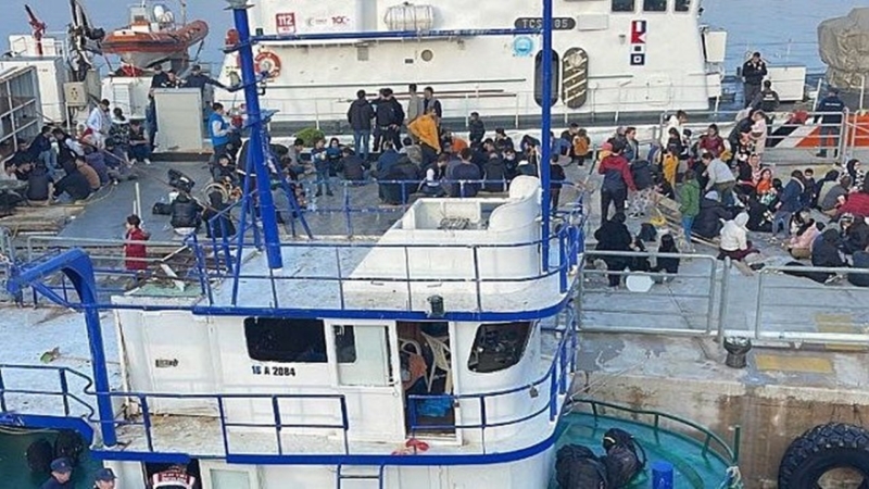 Düzenlenen operasyonda teknedeki 120 düzensiz göçmen karaya çıkarıldı. Aralarında kadın ve çocukların da bulunduğu düzensiz göçmenler, Erdek Kapalı Spor Salonu’na götürüldü.