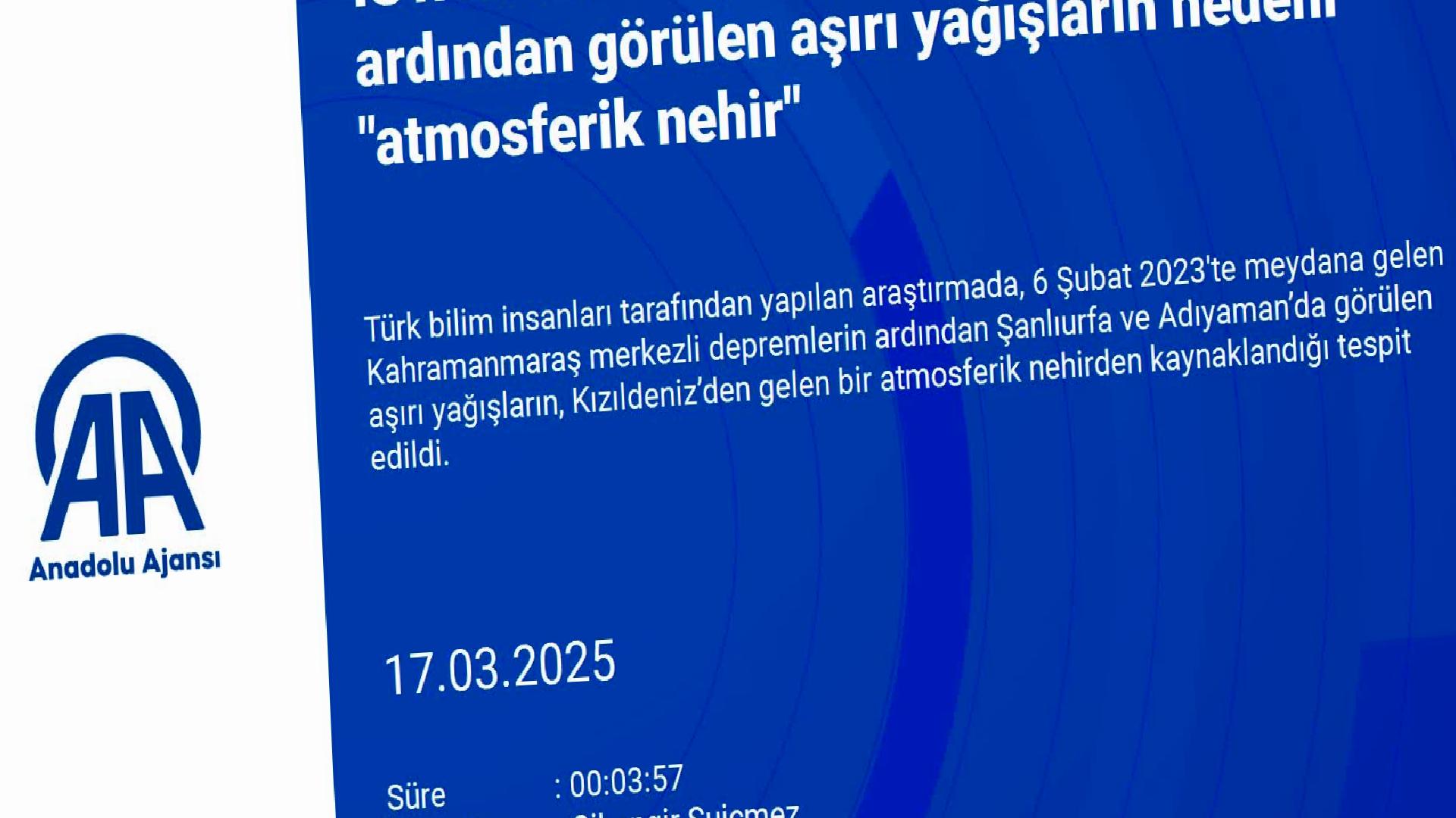 HİKMET FARUK BAŞER – Türk bilim insanları tarafından yapılan araştırmada, 6 Şubat 2023'te meydana gelen Kahramanmaraş merkezli depremlerin ardından Şanlıurfa ve Adıyaman’da görülen aşırı yağışların, Kızıldeniz’den gelen bir atmosferik nehirden kaynaklandığı tespit edildi.