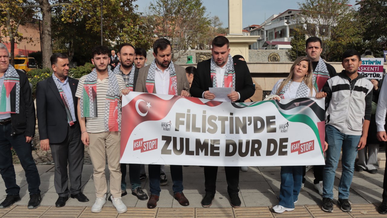 Saldırılarda binlerce Filistinlinin hayatını kaybettiğini anımsatan Aydemir, hakkı ve hakikati haykıran gençler olarak 81 ilde toplandıklarını söyledi.