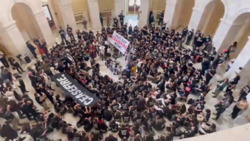 Ateşkes talebinde bulunan Yahudi topluluğu, ”Bu suça ortak olmayacağız. Kongre Gazze’de ateşkes çağrısı yapana kadar buradan ayrılmayacağız.” ifadelerini kullandı.