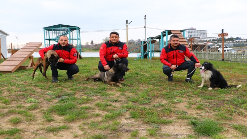 “Border collie” cinsi arama kurtarma köpeği Paşa ile “Belçika kurdu” Badi ve Diva, bir yıl önce hizmete açılan Deprem Arama Kurtarma ve K9 Köpek Eğitim Parkı’nda zorlu görevlere hazır hale getiriliyor.