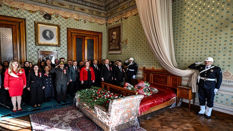 Sarayın Harem bölümündeki 71 numaralı odada düzenlenen anma töreni, Cumhurbaşkanlığı çelenginin sunulmasının ardından, İstanbul Valiliği, Türk Silahlı Kuvvetleri ve İstanbul Büyükşehir Belediye Başkanlığı adına Atatürk’ün hayata gözlerini yumduğu yatağın üzerine çiçek buketlerinin bırakılmasıyla başladı.