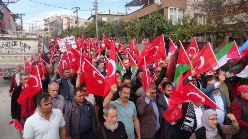 Ellerinde Türkiye ve Filistin bayrakları taşıyan grup, Filistin’e destek, İsrail’e protesto içerikli sloganlar eşliğinde Atatürk Kültür Parkı’na kadar yürüdü.