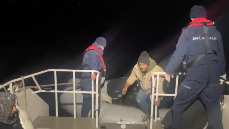 Ekipler, diğer operasyonda ise Ayvalık açıklarında düzensiz göçmenleri taşıyan ve Yunanistan unsurlarınca Türk kara sularına itilen botta düzensiz göçmenlerin bulunduğu bilgisini aldı.