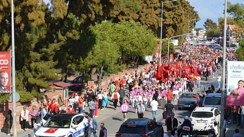Ayvalık’ta Cumhuriyet Kutlamaları İçin Kortej Yürüyüşü Düzenlendi