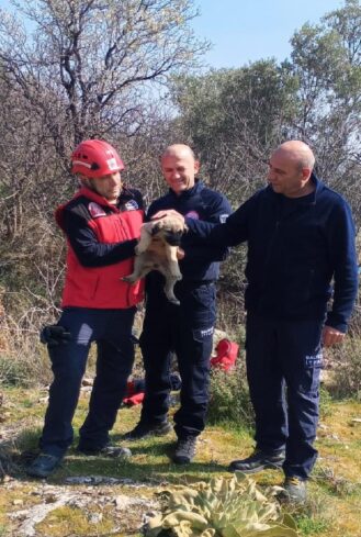 Balıkesir İtfaiye Daire Başkanlığı ekipleri, Tepeoba Mahallesi Kanlı Mağara mevkisindeki bir çukurda köpek yavrusunun mahsur kaldığı bilgisine ulaştı.