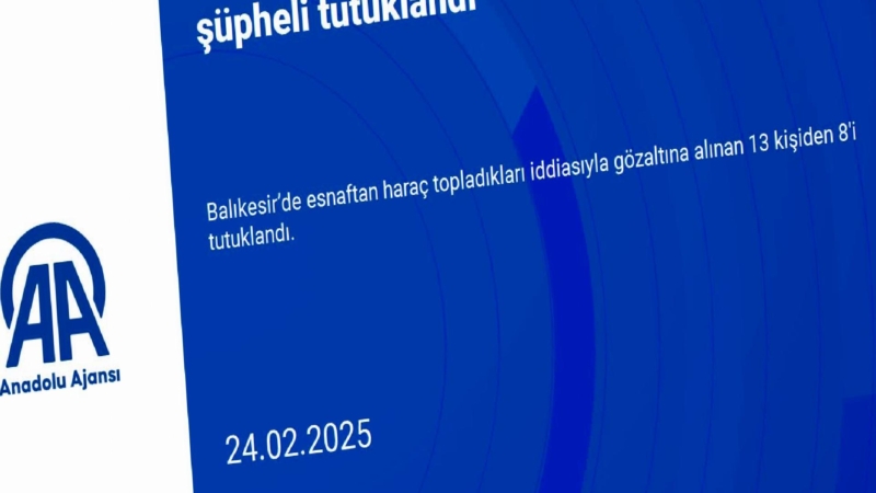 Balıkesir’de esnaftan haraç topladıkları iddiasıyla gözaltına alınan 13 kişiden 8'i tutuklandı.