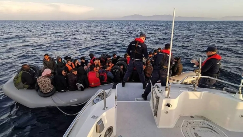 Bunun üzerine Sahil Güvenlik botu “KB-4510” ile bölgeye yönlendirilen ekipler, bottaki 38 düzensiz göçmeni kurtardı.