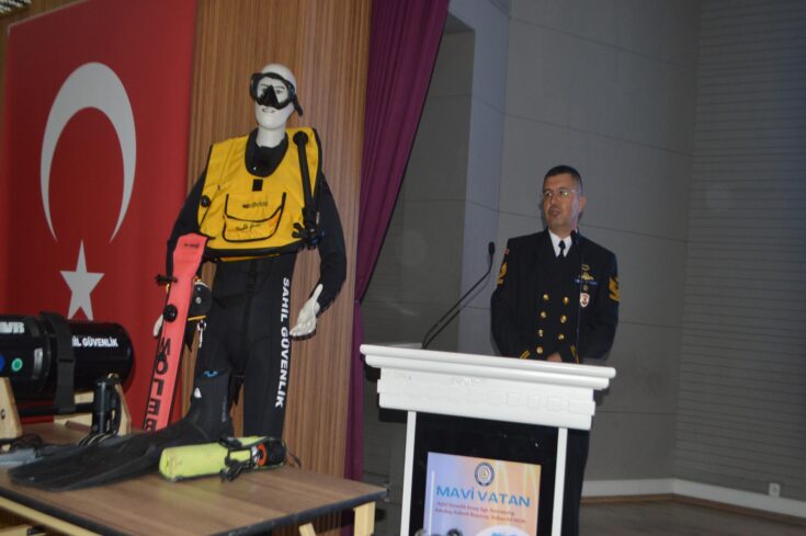 Cunda Turizm Mesleki ve Teknik Anadolu Lisesi'nde Sahil Güvenlik Kuzey Ege Komutanlığı personeli Astsubay Kıdemli Başçavuş Volkan Kayacık tarafından verilen eğitimde Türkiye’nin denizlerdeki stratejik konumu, sahil güvenliğinin önemi ve denizcilikte sürdürülebilirlik gibi konularındaki bilgiler öğrencilere aktarıldı.