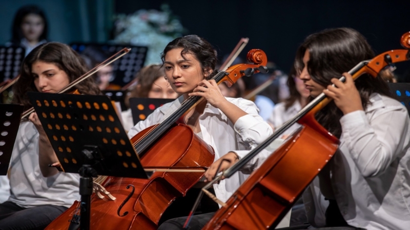 Çocukların gönüllülerin desteğiyle temin edilen 20 kemanla çalışmaya başladığını belirten Günöz, orkestranın Gülsin Onay, İdil Biret ve Gürer Aykal gibi dünyaca ünlü isimlerle sahne aldığını hatırlattı.