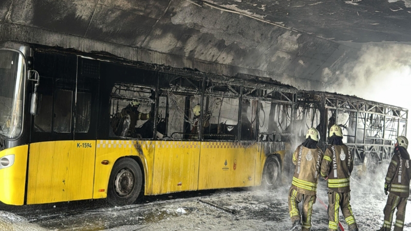 İstanbul'un Başakşehir ilçesinde içinde yolcuların bulunduğu İETT otobüsü, seyir halindeyken çıkan yangın sonucu kullanılamaz hale geldi.