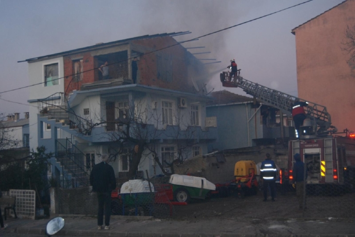 Bayramiç’te çatı yangını itfaiye ekiplerince söndürüldü haberi