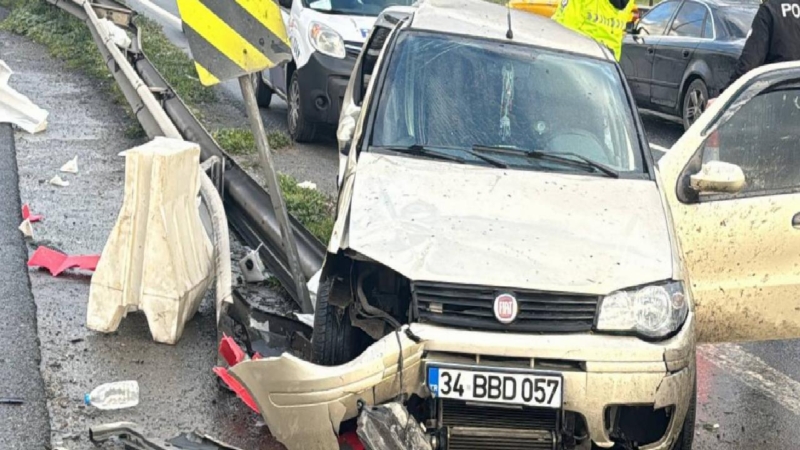 Sürücüsünün ismi henüz öğrenilemeyen 34 BBD 057 plakalı otomobil, Otogar Bağlantı Yolu Metris Cezaevi mevkisinde bariyerlere çarptı.