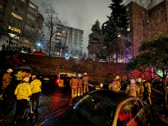 Beşiktaş'ta bir sitenin istinat duvarının çökmesi sonucu otoparktaki bazı araçlar kullanılamaz hale geldi.