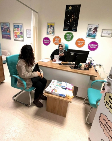 Doğuma Hazırlık Ebe Polikliniğinde görevli Ebe Kadriye Başar da polikliniğinin gebelik öncesi dönemden itibaren anne adaylarının tüm aşamalarda birebir ve danışmanlık ile rehberlik hizmeti sağladığını söyledi.