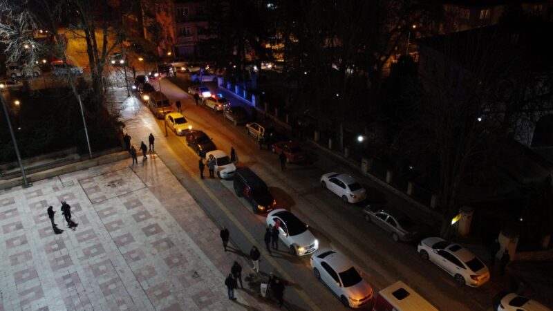 İnsan Hak ve Hürriyetleri (İHH) İnsani Yardım Vakfınca düzenlenen “Gazze için araç konvoyu”na katılanlar, Atatürk Spor Salonu önünde yatsı namazı sonrası bir araya geldi.