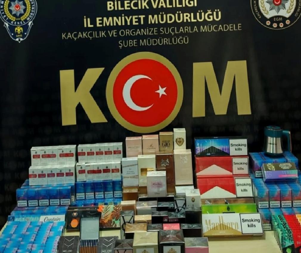Bilecik'te düzenlenen kaçak tütün operasyonunda 740 paket sigara ve 31 şişe parfüm ele geçirildi.
