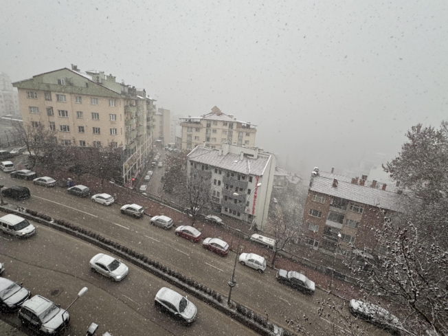 Hava sıcaklığının 1 derece ölçüldüğü kent merkezinde, kar nedeniyle yer yer çatılar ve araçların üzerleri ile refüjler beyaz örtüyle kaplandı.