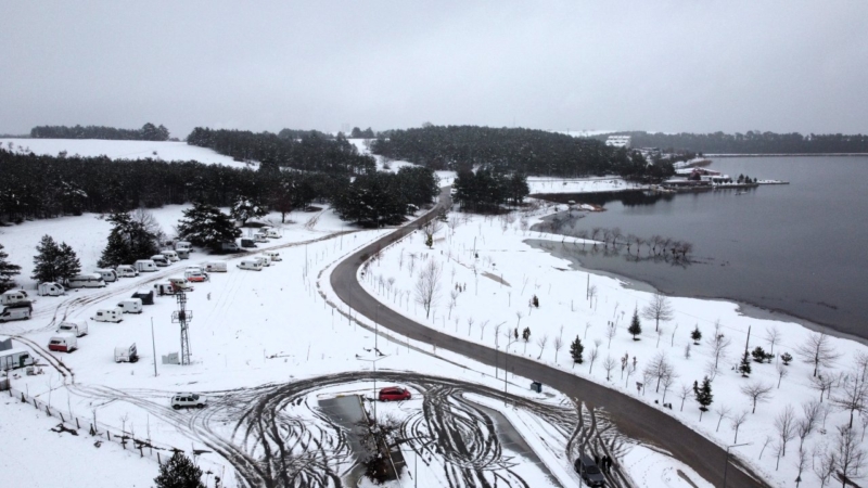 Köy Hizmetleri Genel Müdürlüğünce 1980’li yıllarda sulama amaçlı oluşturulan, 660 metre rakımda 213 hektar alana sahip göletin karla kaplı çam ormanlarıyla bütünleşmesi güzel görüntüler oluşturdu.