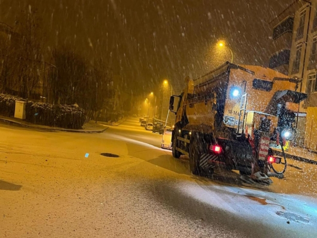 “Kar küreme ve solüsyon araçları ile saha ekipleri, kent genelinde yolların açık kalması için çalışmalarını aralıksız sürdürüyor. Özellikle ana arterler, hastane yolları, okul çevreleri ve toplu taşıma güzergahlarında yoğunlaşan ekipler, vatandaşların güvenli ulaşımını sağlamak için gece boyunca tuzlama ve küreme işlemlerine devam etti. Karla mücadele ekipleri ve diğer birimler teyakkuz halinde.”