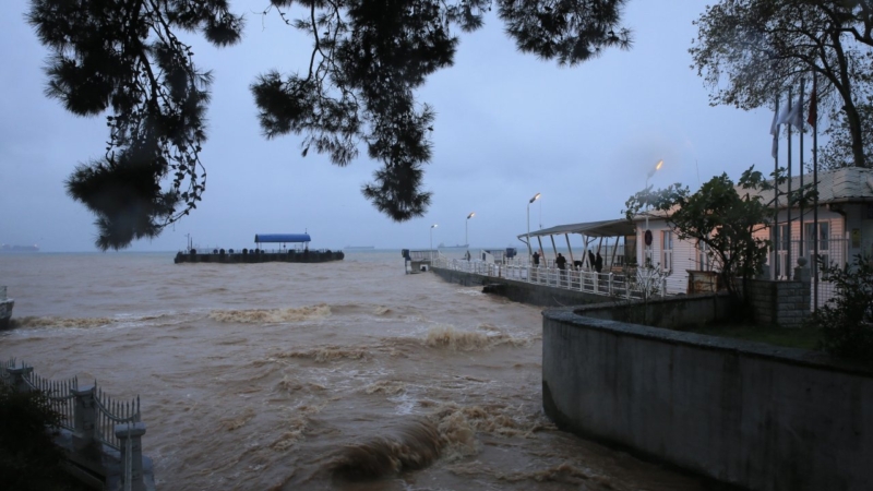 Öten yandan Akçakoca ilçesinde yağışa şiddetli rüzgar eşlik etti. Dalga boyu 5 metreye ulaştı.