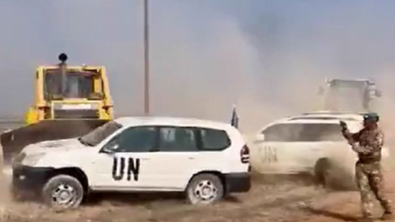 Türk tarafındaki yetkililerin ve yol yapım araçlarını engel olmak isteyen BM Barış Gücü askerleri, ayrıyeten araçlarını KKTC topraklarına park ederek bıraktı.