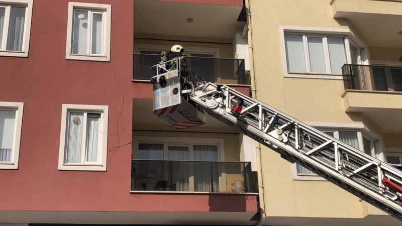 Yoğun duman nedeniyle evlerinde mahsur kalan apartman sakinleri, balkonlara çıkarak yardım bekledi.