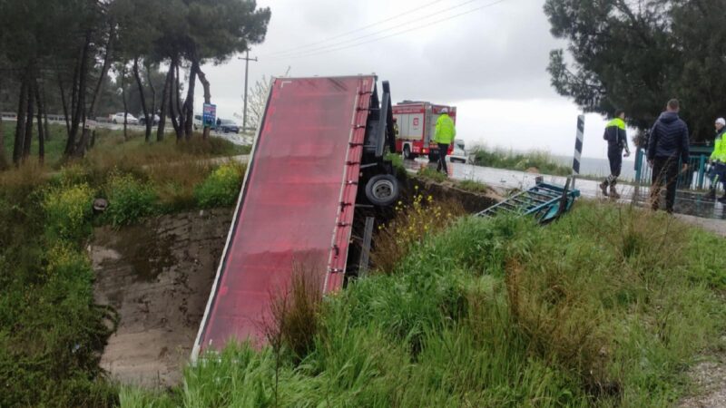 Kontrolden çıkan kamyon, yol kenarındaki dere yatağına devrildi.