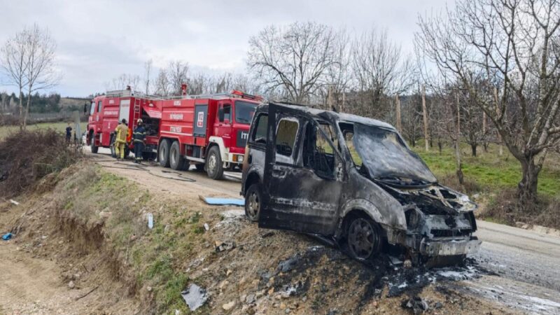 İsaören Mahallesi Boğazova Yaylası yolunda park halinde bulunan, İsaören Mahallesi Muhtarı İsmail Çıbukçu'ya ait 16 AIV 459 plakalı hafif ticari araç, henüz belirlenemeyen nedenle yanmaya başladı.