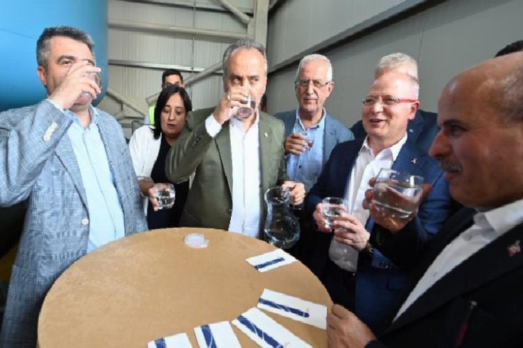 Konuşmaların akabinde açılış kurdelesini kesen Lider Aktaş ve protokol üyeleri, daha sonra tesiste arıtılan sudan içti.