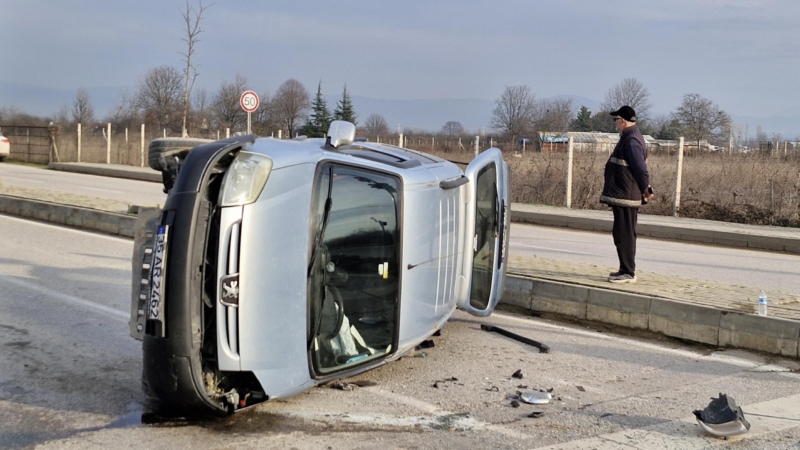 Çarpışmanın etkisiyle hafif ticari araç, trafik levhasına çarpıp devrildi. Araçta bulunan Seyfettin K. (58) ve Mahdu Sena K. (28) hafif şekilde yaralandı.