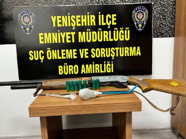 BURSA (AA) – Bursa Yenişehir Emniyet Müdürlüğüne bağlı ekiplerin yaptığı kontrollerde şüphe üzerine durdurulan araçta uyuşturucu madde kullanımında kullanılan 2 adet payp, ruhsatsız av tüfeği ile 8 adet kapsül ele geçirildi.