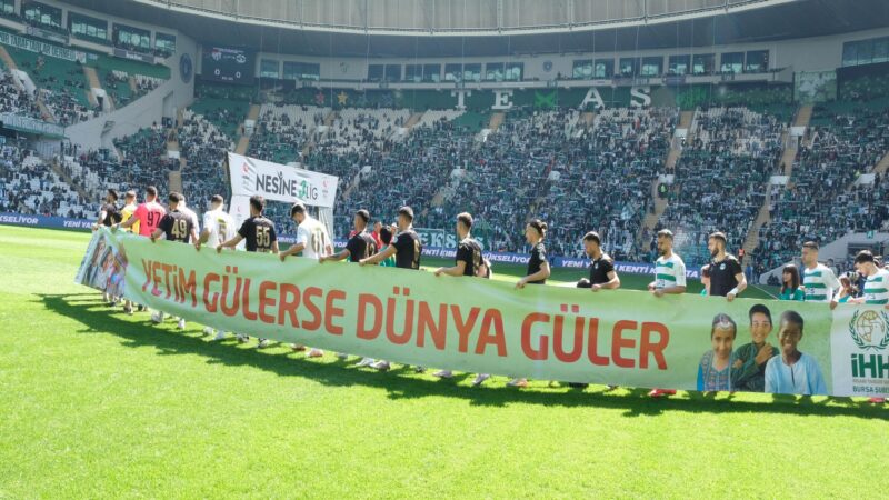 Bursasporlu oyuncular, bu özel anı vurgulamak amacıyla sahaya çıkarken “Yetim gülerse dünya güler” pankartını taşıdı.