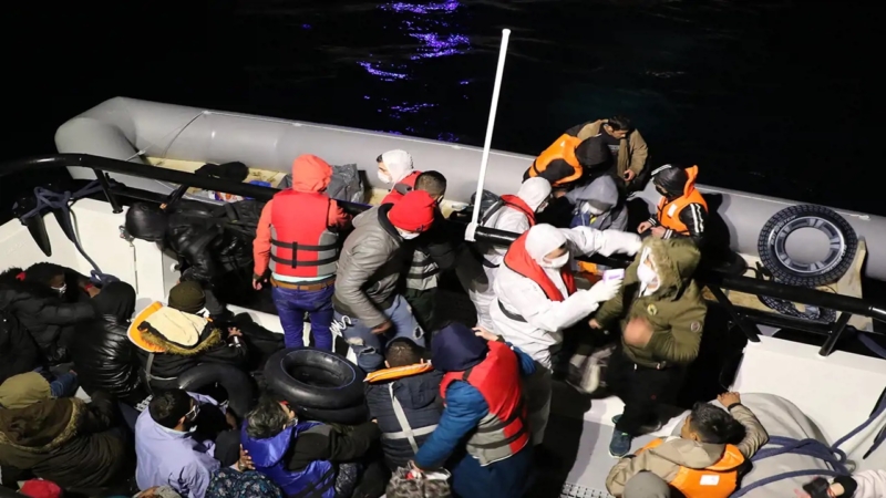 Sahil Güvenlik ekipleri, Yunanistan unsurlarınca Türk kara sularına geri itilen lastik bot içindeki 25 Suriye ve 8 Filistin uyruklu düzensiz göçmeni kurtardı.