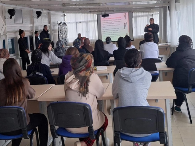 İtfaiye ekipleri tarafından öğrencilere, herhangi bir tehlike durumunda bulundukları binayı nasıl boşaltmaları ve davranmaları gerektiği anlatıldı. Ardından öğrencilerle yurdun önünde bir araya gelerek yangın söndürme konusunda uygulamalı eğitim gerçekleştirdi.