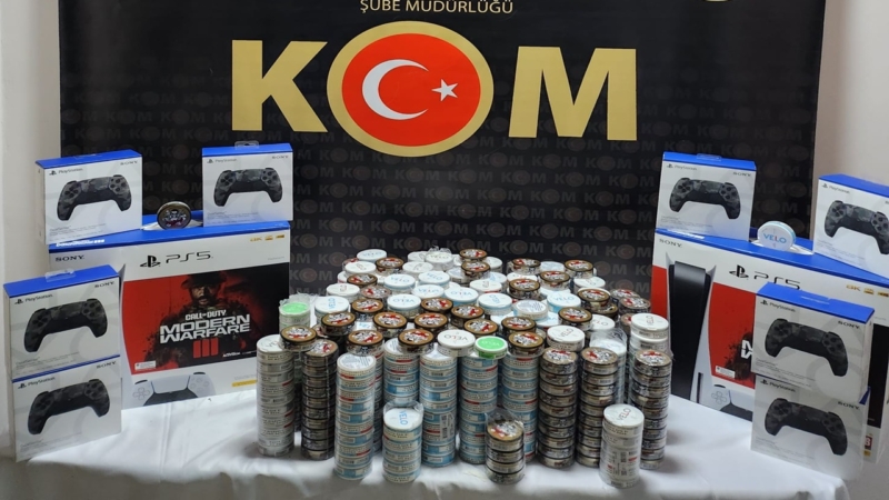 Aramalarda gümrük kaçağı 50 akıllı telefon, 13 akıllı saat, 8 oyun cihazı, 2 oyun konsolu, 16 şişe içki, 630 kutu ilaç ve 118 kilo çay ele geçirildi.