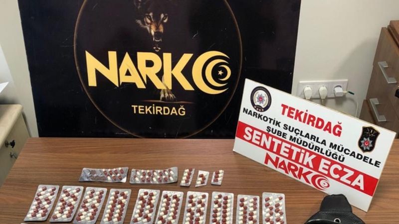 Ekiplerce şüphelilerin çantalarında yapılan aramada 3 bin 570 sentetik ecza ele geçirildi.
