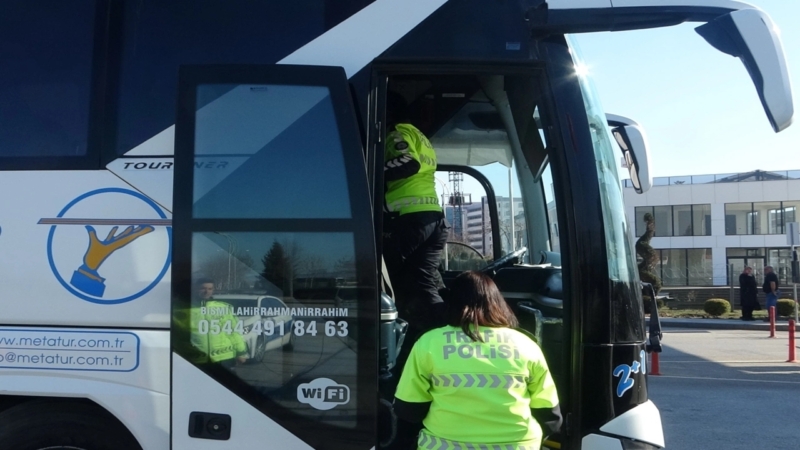 Ekipler ayrıca, otobüs sürücülerini de uykusuz ve yorgun şekilde araç kullanmamaları, seyir esnasında cep telefonu kullanmamaları konusunda uyardı.