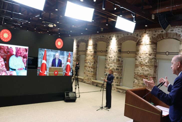 Cumhurbaşkanı Erdoğan, Gine'nin başkenti Konakri'de inşa edilen Recep Tayyip Erdoğan Camisi'nin açılış törenine Cumhurbaşkanlığı Dolmabahçe Çalışma Ofisi'nden canlı bağlantıyla katıldı.
