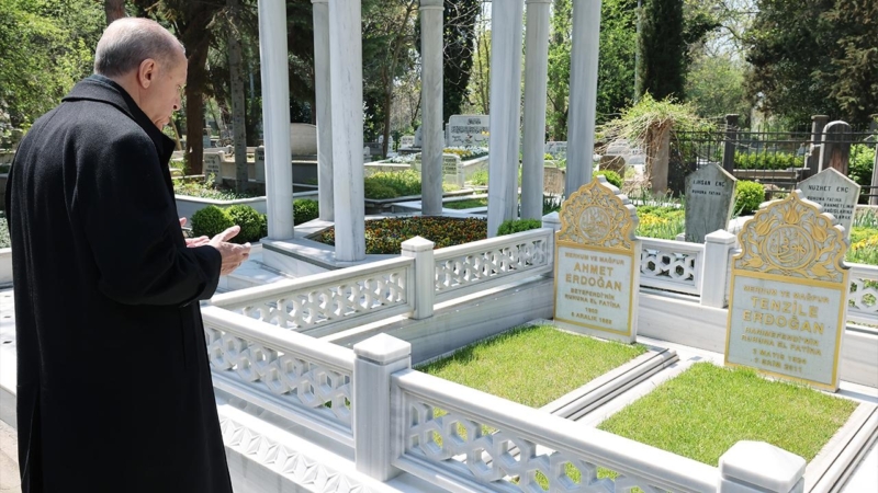 Kısıklı’daki konutundan çıkan Cumhurbaşkanı Erdoğan, annesi Tenzile Erdoğan ve babası Ahmet Erdoğan’ın kabirlerinin bulunduğu Karacaahmet Mezarlığı’na geldi.