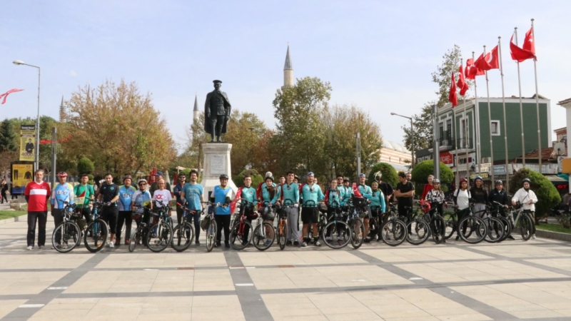 Trakya Üniversitesi Bisiklet Topluluğu (TÜBİT) öncülüğünde düzenlenen “Cumhuriyetimizin 100. Yılı, 100 Bisiklet Cumhuriyet Turu” kapsamında 100 bisikletli Atatürk Anıtı’nda toplandı.