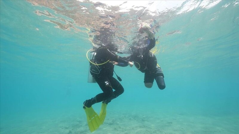 Kamera ile deniz altını kayıt altına alan dalgıçlar bir anda depremi yaşadı. O anlar saniye saniye kameraya yansıdı.
