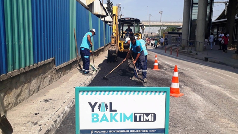 Yağışın ardından bölgede çalışma başlatan Kocaeli Büyükşehir Belediyesi ekipleri, hasar oluşan yollarda onarım çalışması başlattı.