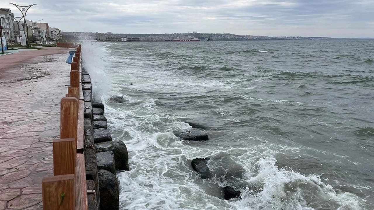 Hızı zaman zaman 40 kilometreye ulaşan poyraz nedeniyle yerli ve yabancı bandıralı 14 şilep ve tanker, Tekirdağ açıklarında demirledi.