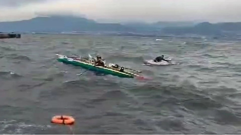 Olumsuz hava şartları nedeniyle 5 tekne karaya yanaşırken diğer teknede bulunan 4 sporcu mahsur kaldı.