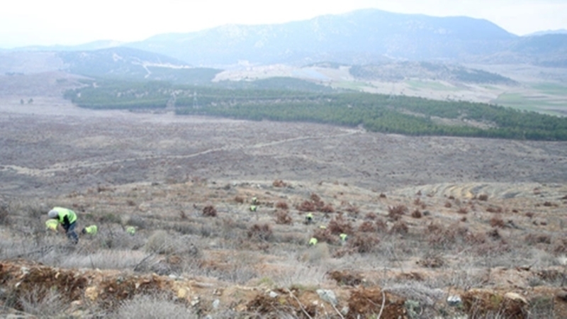 “Toplam 288,2 hektarlık orman alanı yangından zarar görmüştü. Yangın sonrası hızlıca hasar tespit çalışmalarına başlanılmış, yanan ağaçlar kesilerek, saha tamamen temizlenmiştir. Saha en iyi şekilde planlanarak büyük kısmında toprak işlemesi yapılmıştır. Arazinin çok sarp, kayalık, makineli çalışmaya müsait olmayan yerlerinde insan gücü ile toprak işlenerek tohum ekimi yöntemiyle fidan yetiştirilmiştir.”