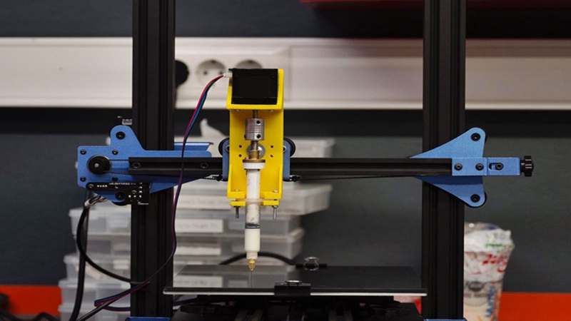 “Yüzey üzerine üç eksende hareket ederek sıvıyı bırakan bir uç var. Bu uç, bu yüzeyde hareket ederek iletken devre yollarını çiziyor. Bu devre yolları da cihaza daha öncesinde kullanıcının tasarladığı programdan aktarılmış oluyor. Cihazda devrenin basıldığı iletken mürekkep yerine farklı iletken maddeler de kullanılabiliyor. Cihazla, esnek ya da sert olan herhangi bir yüzey üzerine baskı yapılabiliyor.”