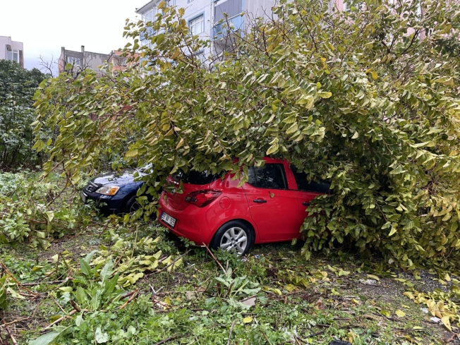 Devrilen ağaç, itfaiye ekiplerince kesilerek kaldırıldı. Olay nedeniyle 3 otomobilde hasar oluştu.