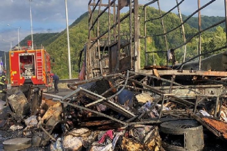 Sefer DEMİR / DÜZCE (İGFA) – Alınan bilgiye nazaran Hüseyin Ö. yönetimindeki 34 YNZ 94 plakalı mesken eşyası yüklü kamyon otoyolun Bolu Dağı Kaynaşlı geçişi 1. Viyadük mevkiinde seyir halindeyken şimdi belirlenemeyen nedenle yanmaya başladı.